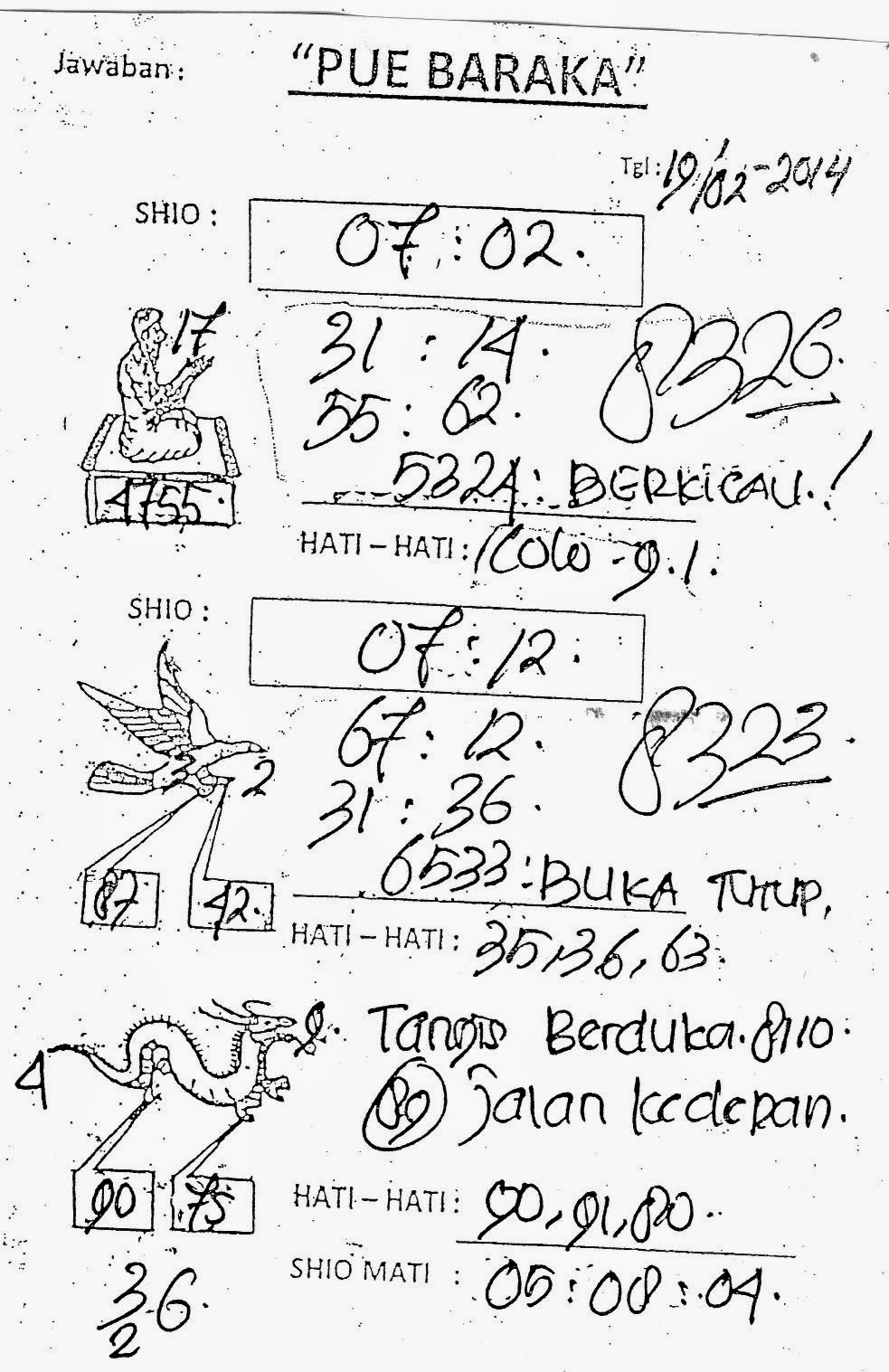 SYAIR TOGEL SINGAPURA STS SYAIR SGP RABU 19 FEBRUARI 2014